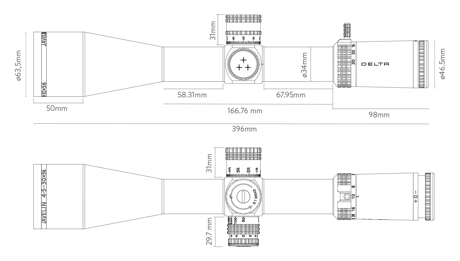 Delta Javelin 4,5-30x56 FFP jest lunetą przeznaczoną do karabinów wyborowych z kalibrem .338 Lapua włącznie. Posiada wszelkie cechy, które ułatwią strzelanie na dalekich dystansach: