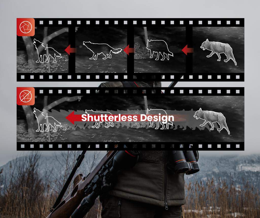Innowacyjna technologia migawki 3.0 eliminuje dźwięk kliknięcia i zatrzymywanie obrazu, zapewniając nieprzerwany obraz w czasie rzeczywistym podczas polowań, na wypadek gdyby jakiekolwiek strzały zostały zgubione lub pominięte podczas kalibracji.