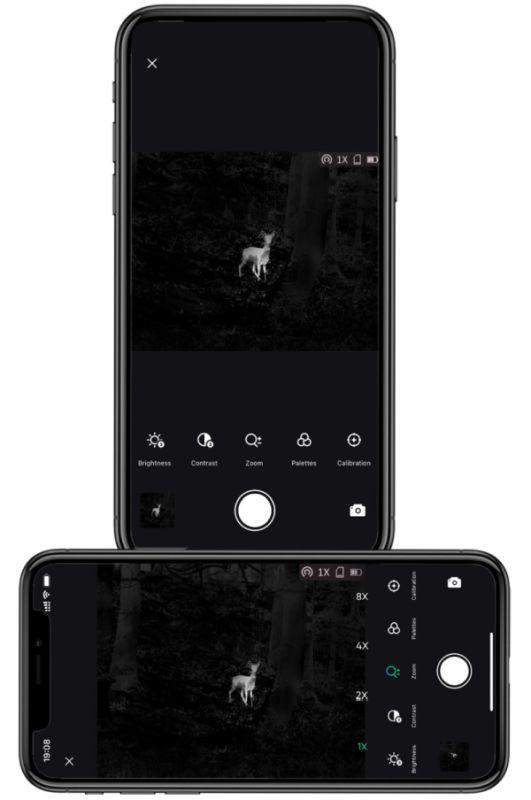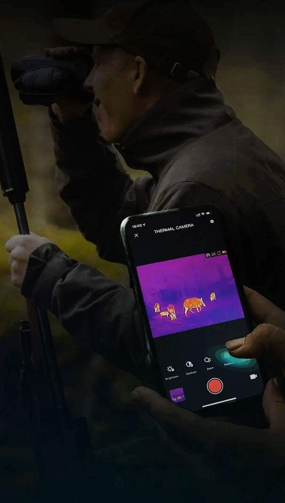 Urządzenie zostało wyposażone w stałe powiększenie optyczne 2,7x, które w połączeniu z aż 8-krotnym zoomem cyfrowym gwarantuje nam możliwość precyzyjnej identyfikacji celu na dużych dystansach. Cztery stopnie powiększenia pozwolą nam na idealne dostosowanie do dystansu dzielącego nas od zwierzyny. Do naszej dyspozycji oddane zostały pięć palet kolorystycznych wyświetlanego obrazu (Black Hot, White Hot, Red Hot, Red Monochrome, Green Monochrome, Fusion), dzięki czemu możemy dostosować go do naszych preferencji. Pokrętło regulacji ogniskowania umiejscowione z tyłu urządzenia pozwoli nam natomiast na idealne dopasowanie ostrości obrazu do dystansów przy użyciu jednej ręki.