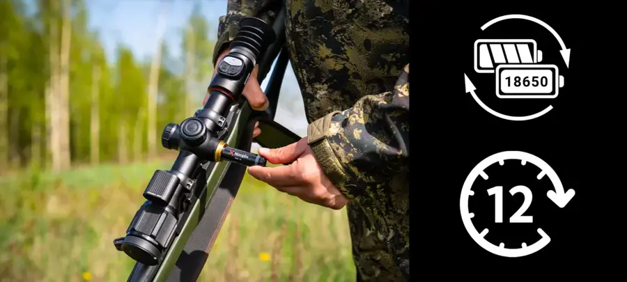 Podwójne źródło zasilania (wbudowany akumulator 5000 mAh + wymienny 18650) zapewnia do 12 godzin pracy. Nie musisz inwestować w zewnętrzny powerbank czy martwić się o ładowanie w terenie.