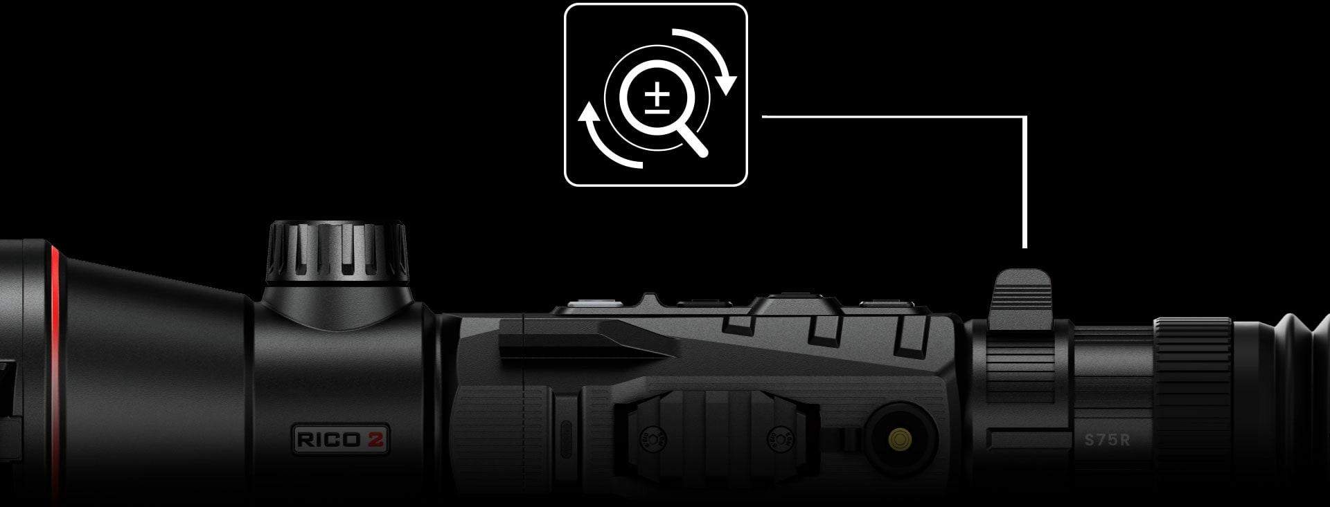 Seria Rico 2 H50R pozwala na precyzyjne dostosowanie powiększenia dzięki płynnej dźwigni zoomu LPVO, umożliwiając szybkie i bezproblemowe zmiany powiększenia oraz skuteczne namierzanie celów na każdej odległości.