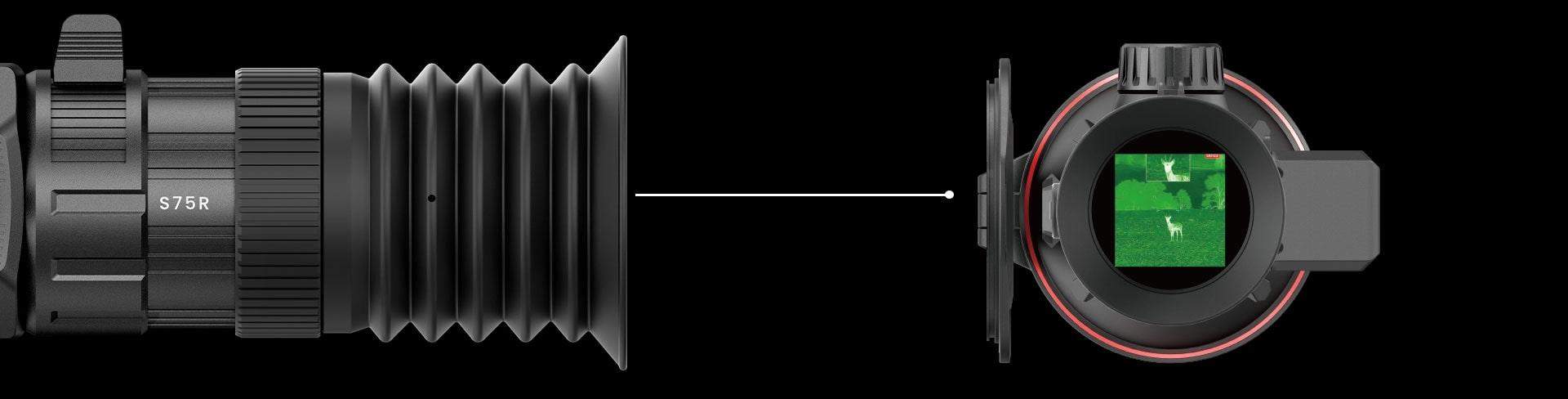 Celownik posiada wyświetlacz OLED 1.03” o rozdzielczości 2560×2560 (S75R), pozbawiony zniekształceń okular, odległość od oka wynoszącą 70 mm oraz źrenicę wyjściową 23 mm, co zapewnia wyraźne wrażenia wizualne nawet podczas długotrwałych obserwacji.